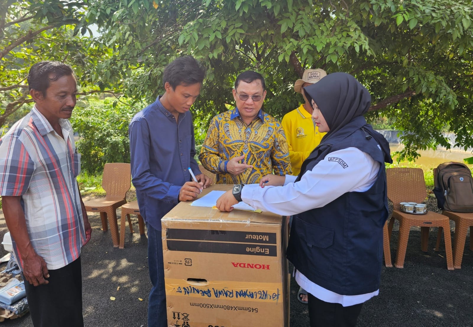 DelikAsia.com, (Tulang Bawang) | Anggota DPR RI Hanan A. Rozak menyerahkan bantuan mesin ketinting fasiltasi aspirasi bagi nelayan di Kabupaten Tulang Bawang dan Way Kanan di Rumah Aspirasi, Menggala, pada Rabu (3/7/2024).