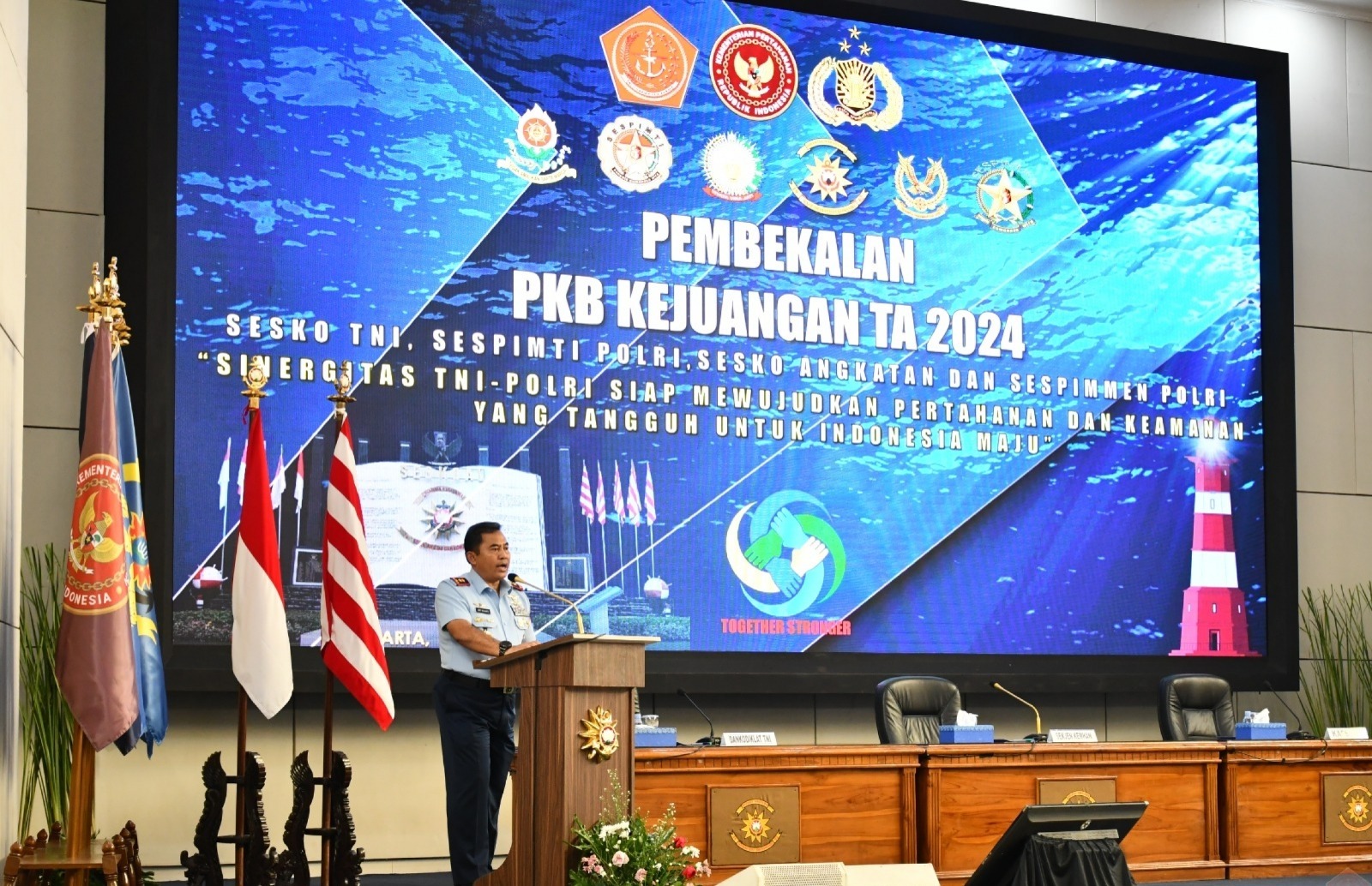 DelikAsia.com, (Jakarta) |  Komandan Sesko TNI Marsda TNI Arif Widianto, S.A.B., M.Tr (Han)., CHRMP mengikuti ceramah pembekalan pada Program Kegiatan Bersama (PKB) Kejuangan Sesko TNI, Sespimti Polri, Sesko Angkatan dan Sespimmen Polri TA 2024,  secara virtual bertempat di Auditorium Yos Sudarso dan Amphitheatre Samadikun  Seskoal Cipulir, Jakarta Selatan, Rabu (8/5/2024).