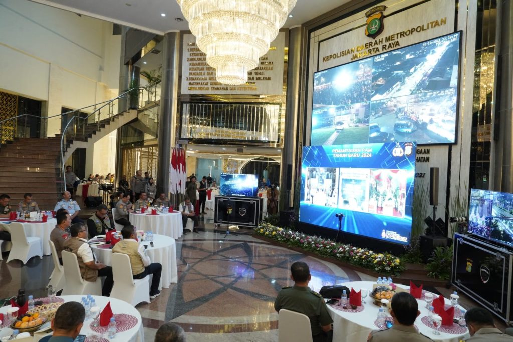 DelikAsia.com, (Jakarta) | Panglima TNI Jenderal TNI Agus Subiyanto bersama Kapolri Jenderal Pol. Listyo Sigit Prabowo melaksanakan pemantauan dan pengecekan situasi keamanan ketertiban masyarakat (Sitkamtibmas) malam pergantian Tahun Baru 2024 yang dilaksanakan secara tatap muka dan virtual, bertempat di Gedung Promoter Polda Metro Jaya Jl. Jenderal Sudirman 55 Kebayoran Baru, Jakarta Selatan, Minggu (31/12/2023).
